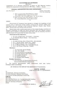 Government of Telangana have decided to mitigate the hardships of Gulf workers to implement certain welfare measures for persons hailing from Telangana who are working in Gulf Countries.