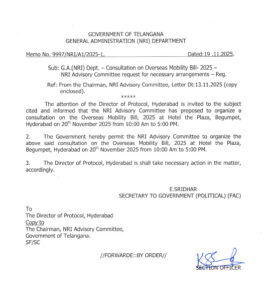 Telengana Consultation on Overseas Mobility (Facilitation and Welfare) Bill 2025